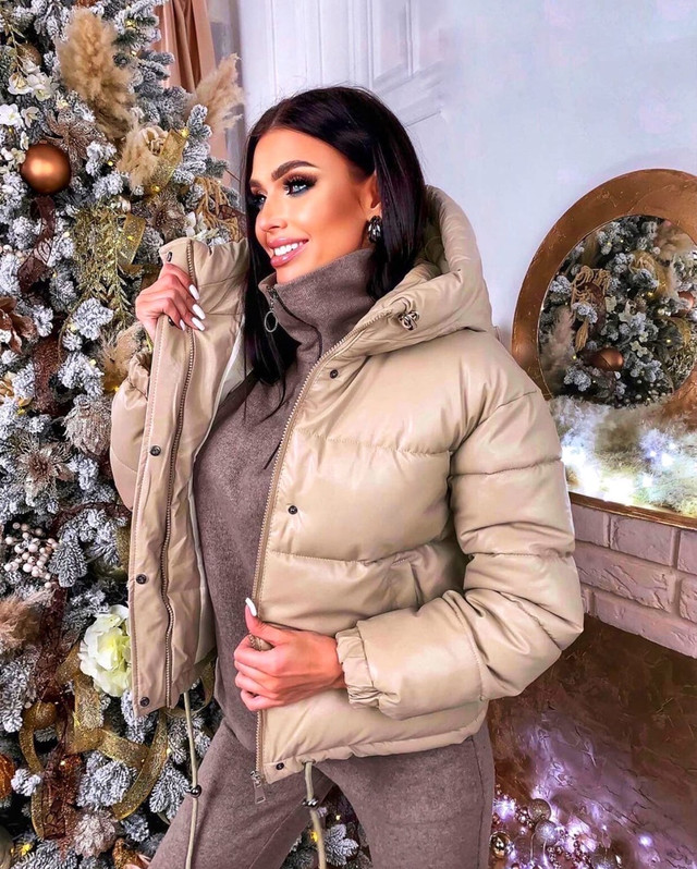 Жіноча трендова куртка з капюшоном із еко-шкіри (Норма)
