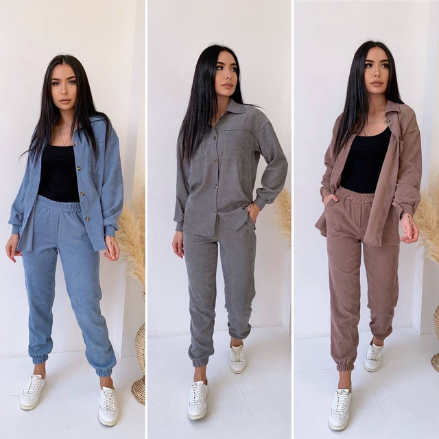 Жіночий брючний прогулянковий костюм Oversize мікровельвет рубашка и штаны