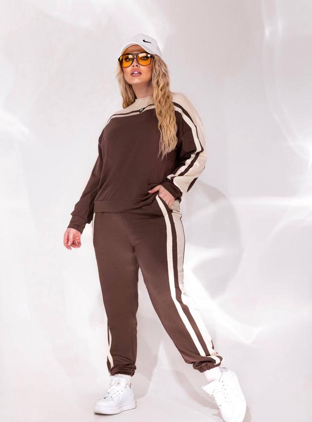 Костюм жіночий стильний із двунитки з лампасами великого розміру