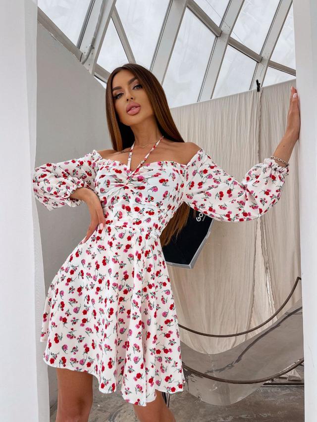 Сукня жіноча квіткова із софту з розрізом по нозі (Норма)