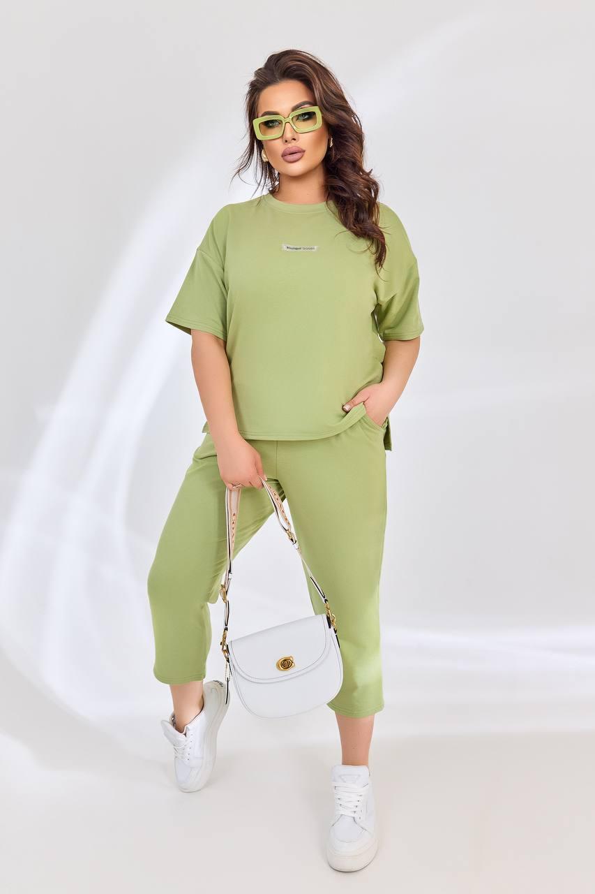 Костюм жіночий прогулянковий футболка і бріджи з двонитки (Батал)