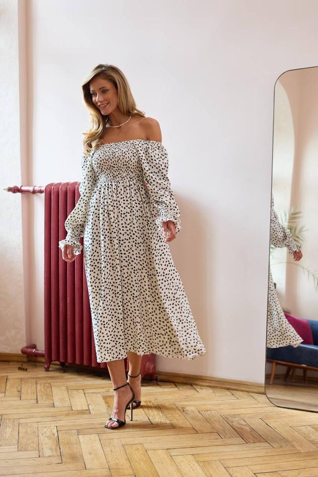 Сукня жіноча із софту у квітковий принт з настрочною резинкою на груді (Норма)