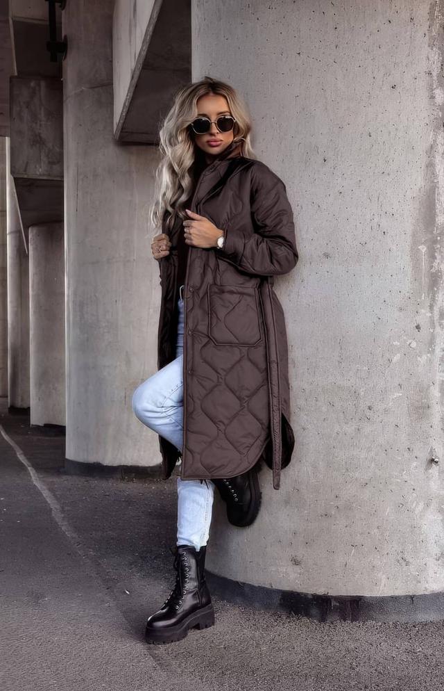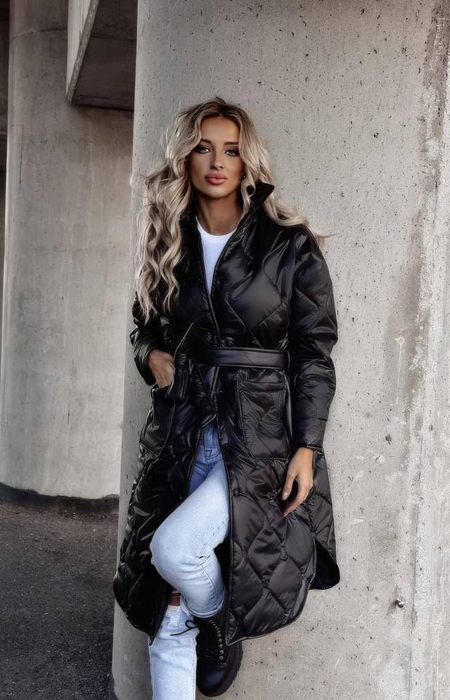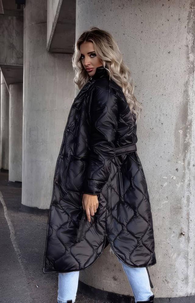 Куртка-пальто жіноча стьобана з поясом утеплювач силікон