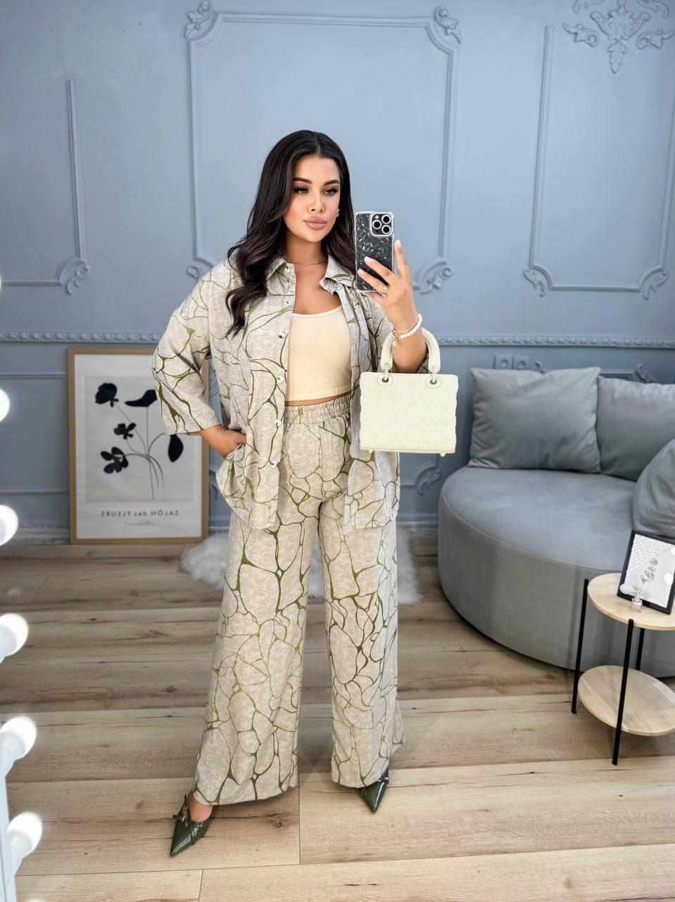 Жіночий літній брючний костюм із софту з принтом рр.50-52,54-56