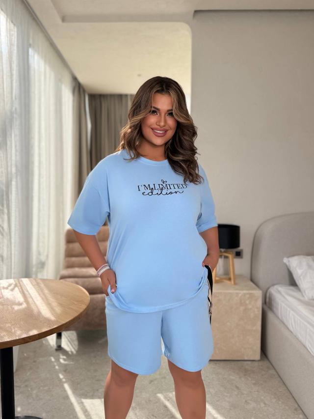 Жіночий літній спортивний костюм футболка з надписом і футболка (Батал)
